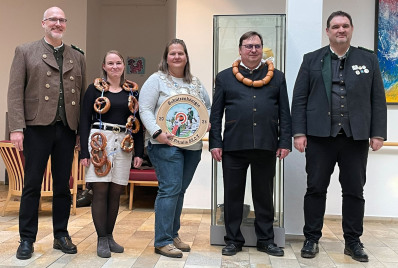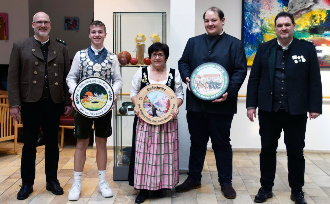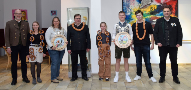 Lehmann jun. (1. Schützenkönig), Martina Langenegger (2. Schützenkönigin / "Wurstkönigin"), Peter Ramisch jun. (3. Schützenkönig / "Breznkönig"), Gregor Liebe (1.