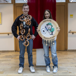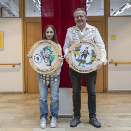 (v.l.n.r.): Felix Leuner (3. Jugend-Schützenkönig / "Breznkönig"), Valentina Pitzalis (1. Jugend-Schützenkönigin), Gerhard